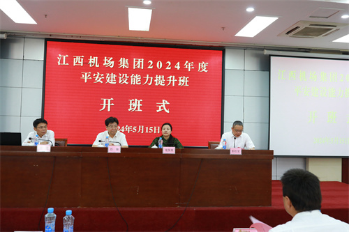 5月15日上午,江西机场集团2024年度平安建设能力提升班开班式在学校培训楼举行。省机场集团有限公司党委书记、董事长万林、江西飞行学院校长龙国英出席开班式,省机场集团各部门及分公司负责同志参加开班式。开班式由省机场集团有限公司航空安全保卫部总经理彭红宏主持。